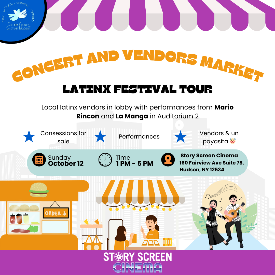 NUESTRO ÚLTIMO EVENTO DEL LATINX FESTIVAL TOUR 2025: CONCIERTO Y MERCADO DE VENDEDORES EN STORY SCREEN CINEMA, EL 12 DE OCTUBRE, DE 1:00 PM A 5:00 PM